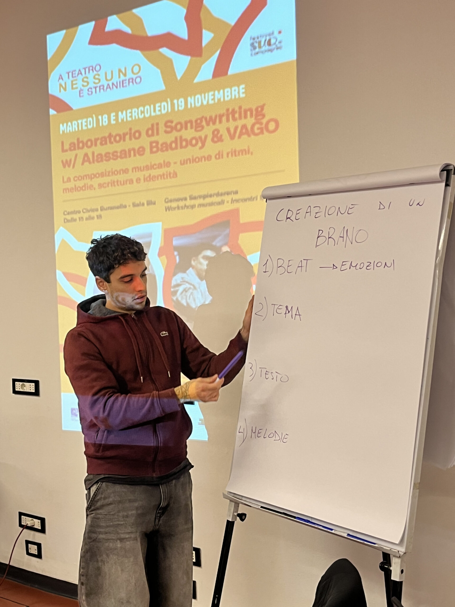 Workshop musicale – Dj MabelWorkshop Songwriting – foto di gruppoWorkshop Songwriting – VagoAppuntiWorkshop songwriting – foto di gruppo a lezioneWorkshop Songwriting – foto di gruppoWorkshop teatrale – Sara CianfrigliaWorkshop teatrale – foto di gruppoWorkshop teatrale – Carla Peirolero e Sara CianfrigliaWorkshop teatrale – foto di gruppoWorkshop teatrale – Giacomo Rivera, Sara Cianfriglia e Omar HayaniWorkshop teatrale – Omar Hayani e Sara Cianfriglia