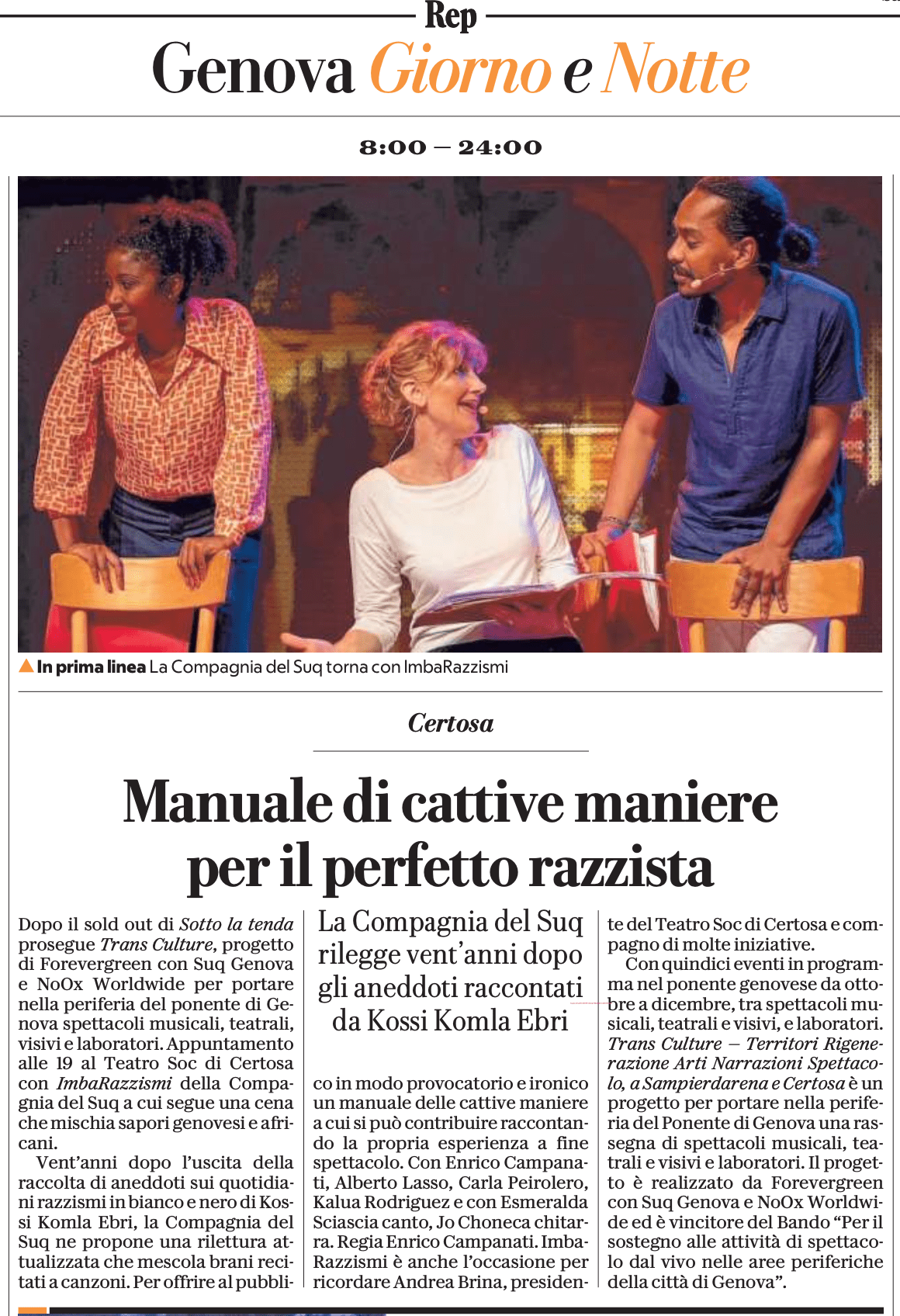 Giornata contro la discriminazione razziale: il 21 marzo Imbarazzismi della Compagnia del Suq alla Tosse – Goa Magazine