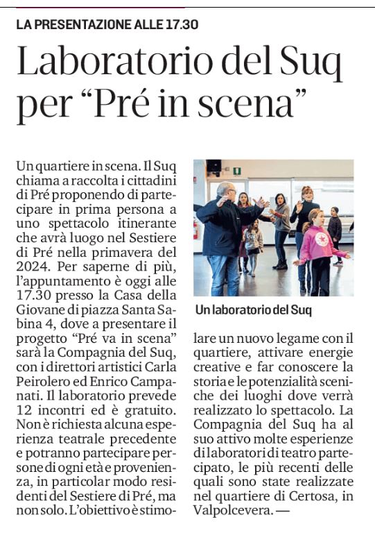 Laboratorio del Suq per Pre’ in scena – Il Secolo XIX